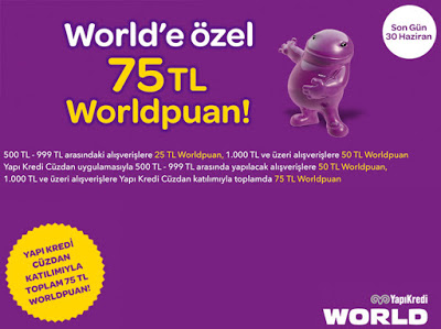 Kampanyanın kapsamında belli tarihler vardır. World card ile hepsiburada.com‘dan tek bir alışverişte 500 TL- 999 TL arasında yapacağınız peşin veya taksitli alışverişlere 25 TL World puan kazandırılır. Eğer tek seferde yapacak olduğunuza 1.000 TL üzeri peşin veya taksitli olan alışverişlerinize 50 TL değerinde World puan hediye edilecektir. Kampanyanın tarihlerine ulaşabilmek için hepsiburada.com adresine girerek ulaşabilirsiniz. Yapı kredi cüzdanlarından kampanyaya katılan müşteriler için yine belli tarih aralarında tek seferde yapacağınız alışverişler için belli bir miktarda World puan hediye edilir.