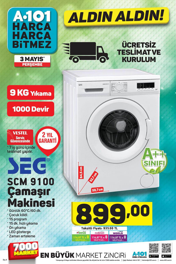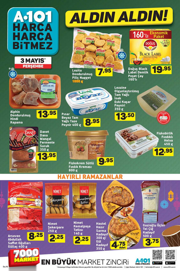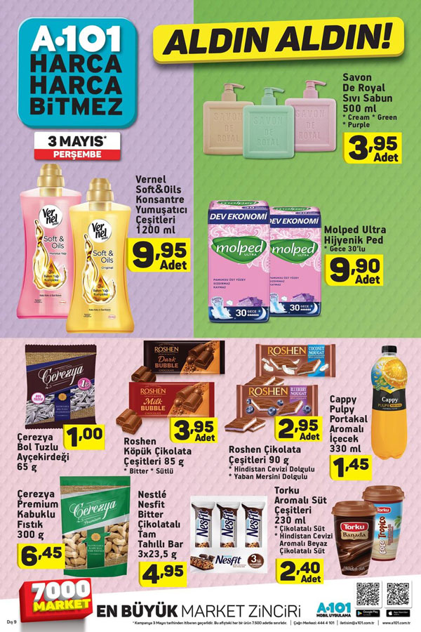 Cazip ürünler ve kampanyalı bir çok üründe yapacağınız alışverişlerde cebiniz zorlanmadan tüm ihtiyaçlarınızı karşılayabilirsiniz. Bilhassa fırsat ürünleri isimi altında satışı yapılan bir çok üründe aile ekonominize katkıda bulunabilir bu arada iş yerleriniz tüm ihtiyaçlarını giderebilirsiniz. 3 Mayıs A101 fırsat günlerinde yayınlanan indirim Fihristlerinde hangi ürünlere ne kadarlık indirim yapılmış beraber inceleyelim. Gıda ve temel ihtiyaçlarınızı kaliteli ürünlerle karşılayabileceğiniz bir çok avantajlı ürün çeşitli sloganlar altında siz müşterilerin beğenisine sunuluyor. Bir çok çeşit taze gıda, süt ürünleri,sebze, dondurulmuş gıda ve temizlik ürün gruplarında yapmış olduğu indirimlerle yurttaşların ihtiyaçlarını giderebilmektedir. A101 marketlerinin izlemiş olduğu ücret siyasetleriyle bir çok yurttaşımızın bütçesine katkıda bulunduğu gibi ülke ekonomisine de bir çok yararı olduğu görünüyor. Sıhhatli ve markalı ürünleri belirli testlerden geçirdikten sonra satışa sunan A101 mağazaları, Türkiye’nin dört bir yanından satışa sunduğu ürünleri merakla bekleyen müşterileri için yayınladı broşürle duyurmakta. Ürün gamı istikametinden oldukça zengin çeşitliliğe sahip olan market, hem mağaza sayısını artırıyor hem de bir çok alışveriş sevenin keyifli bir alışveriş gerçekleştirmesini sağlıyor.