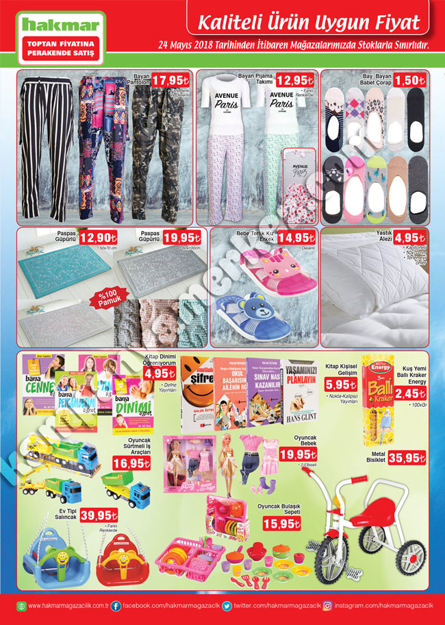 Hakmar güncel ekspres kataloğu belli oldu. 24 Mayıs 2018 tarihinde indirime girecek Hakmar fırsat ürünleri ile 31 Mayıs 2018 tarihinde indirime girecek olan kampanyalı ürünler kataloğu yayınlandı. İndirimli fırsatlarda bu hafta da Hakmar şubelerinde çok fazla üründe indirim imkanı sunuluyor.
