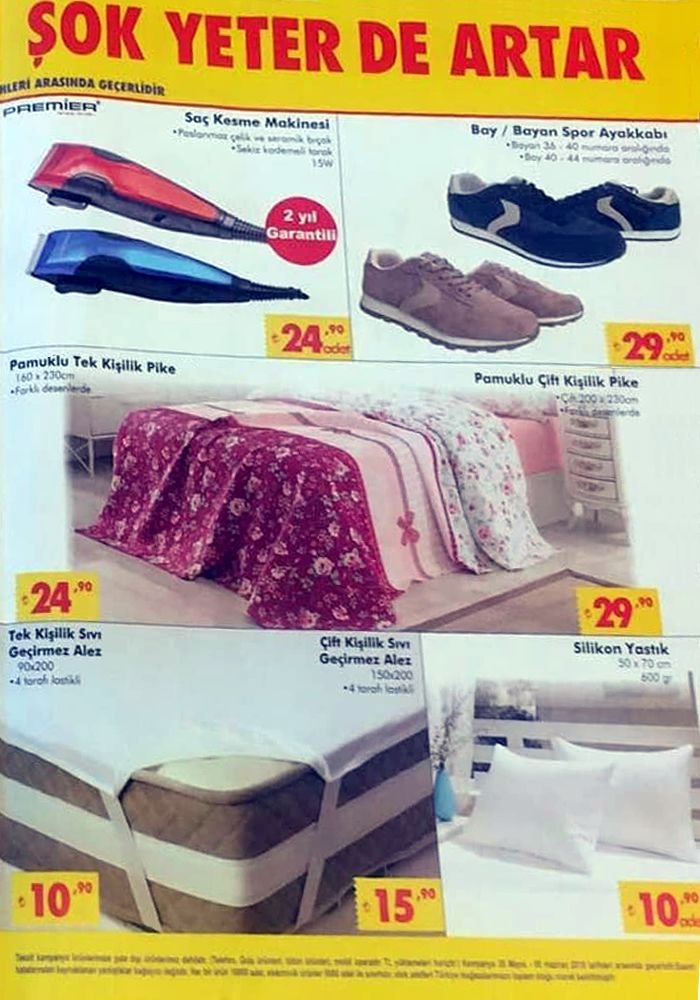 Şok market indirimli ürün kampanyaları ŞOK 30 Mayıs 2018 çarşamba fırsat ürünlerinde bu hafta neler olacak? Şok aktüel 30 Mayıs indirimine sayılı günler kala market müşterileri yeni katalogda nelerin olacağını merakla bekliyor. Diğer marketler göre Şok market mağazalarının şubelerinde indirime 3 gün kala yeni kataloglar yayınlanmaya ve dağıtılmaya başlanıyor. Siz de herkesten önce indirim kataloglarını incelemek için kampanyamerkez güncel aktüel ürün sayfalarını takip edebilirsiniz. Şok aktüel 6 Haziran 2018 indirim kampanyasına kadar devam edecek olan fırsatların içinde neler olacağını biz de merak etmekteyiz. Fırsat kataloglarında beyaz eşyaların olması, çamaşır makinesi ve bulaşık makinesi ile yaz aylarında sıcaktan bunalanlar için soğuk su sebillerinin getirilmesi isteniyor. Mini buzdolabı isteyenlerin sayısı da azımsanmayacak kadar fazla. Şok market akıllı telefon kampanyalarında da müşterilerin talepleri daha fazla Samsung, LG ve Apple iPhone marka telefonların getirilmesinden yana. Hem kaliteli hem de uygun fiyatlı akıllı telefonlar arayanların geçtiğimiz aylarda da en fazla talebi bu yönde olmuştu. Şok market telefon kampanyalarını takip etmek isteyenlerin indirim kataloglarının güncellenmesinin ardından katalogda yer alan ürünlerle diğer marketlerde ya da elektronik mağazalarda indirimli fiyatlarla buradaki ürünün serisini ve fiyatını kıyaslayarak hangi ürün daha avantajlıysa bu ürüne yönelmelerini tavsiye ediyoruz.